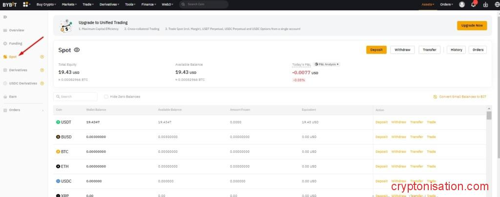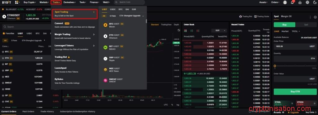 - Откройте вкладку Trade → Spot Trading;