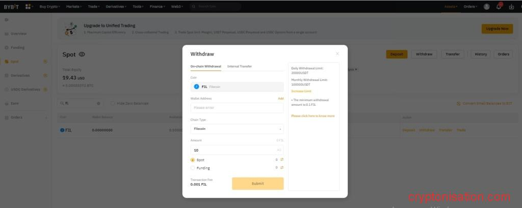 Рассмотрим, как вывести Filecoin (FIL) с 👉 Bybit на Trust Wallet: