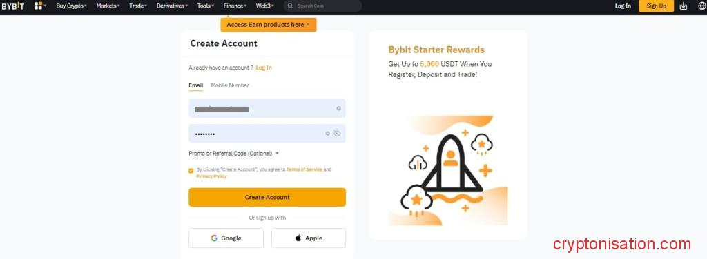 Для создания аккаунта на бирже Байбит: