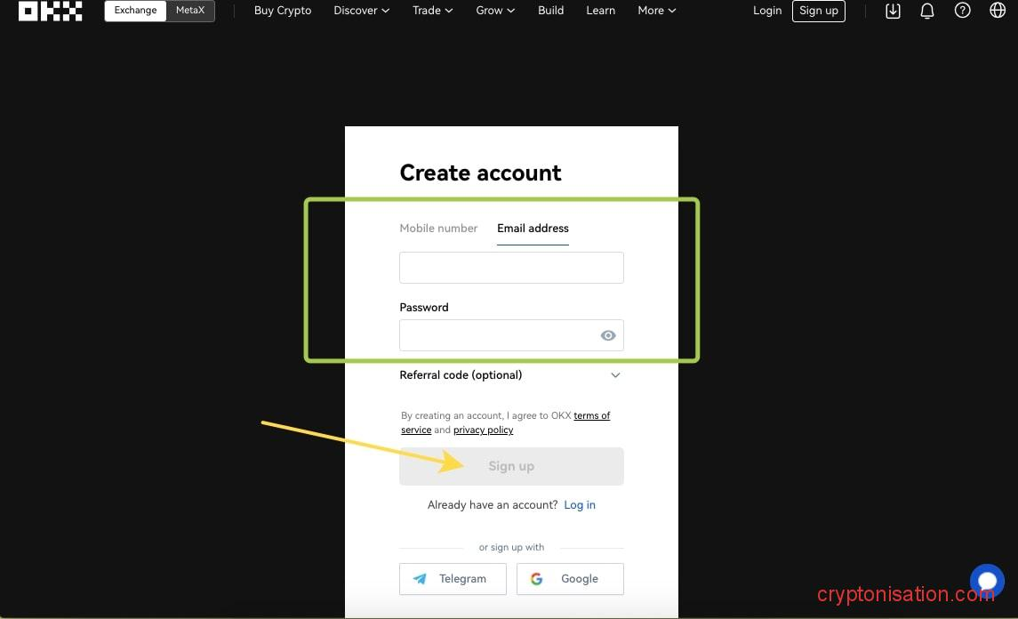 Чтобы зарегистрироваться на OKX (OKEX), новому пользователю достаточно указать актуальную электронную почту или номер телефона и защитить свой аккаунт сложным паролем.