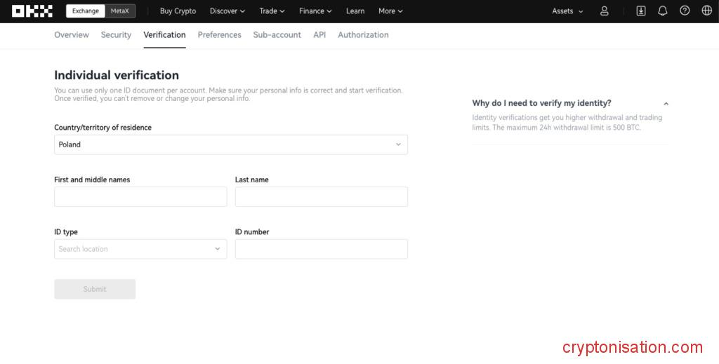 Проверка KYC1 не является обязательной на OKX (OKEX), и новый пользователь может получить доступ к функционалу платформы сразу после регистрации. Однако верифицированные клиенты биржи могут торговать на P2P-платформе и получают увеличенные лимиты на вывод средств. 🚩