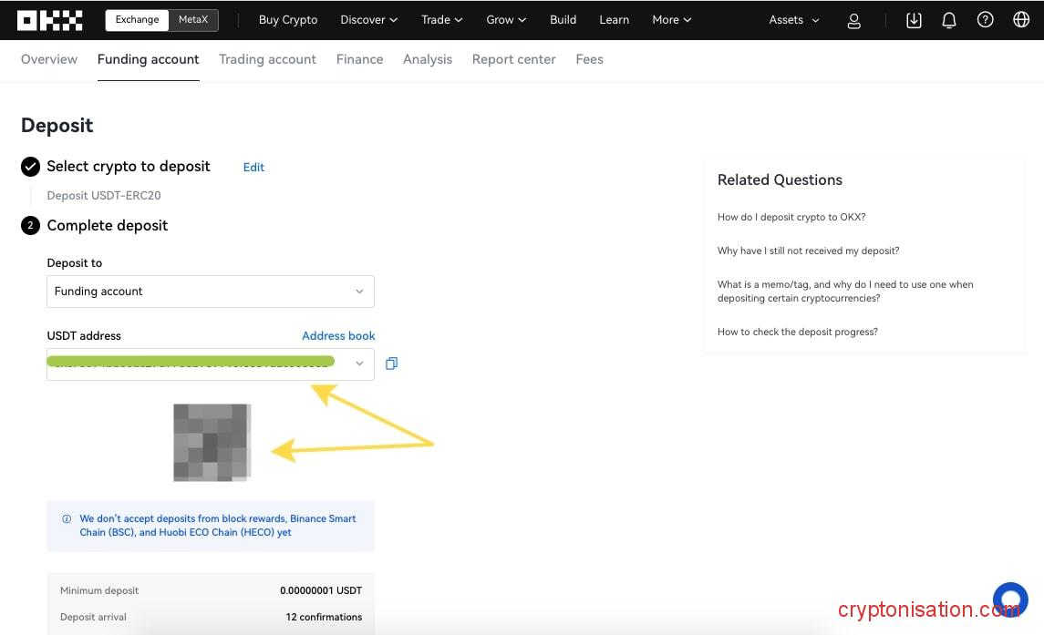 Для пополнения нам понадобится вкладка Assets → Deposit. Дальше все элементарно: