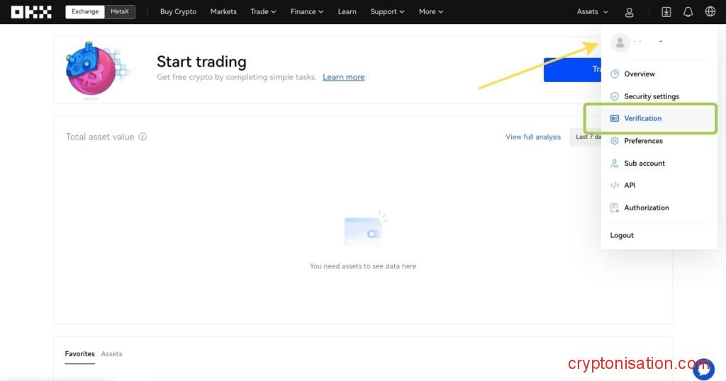 Для торговли на OKX (OKEX) нужно пройти верификацию личности. Для этого: