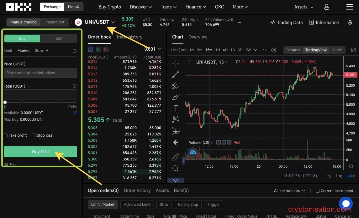 Чтобы купить Uniswap на бирже OKX (OKEX):