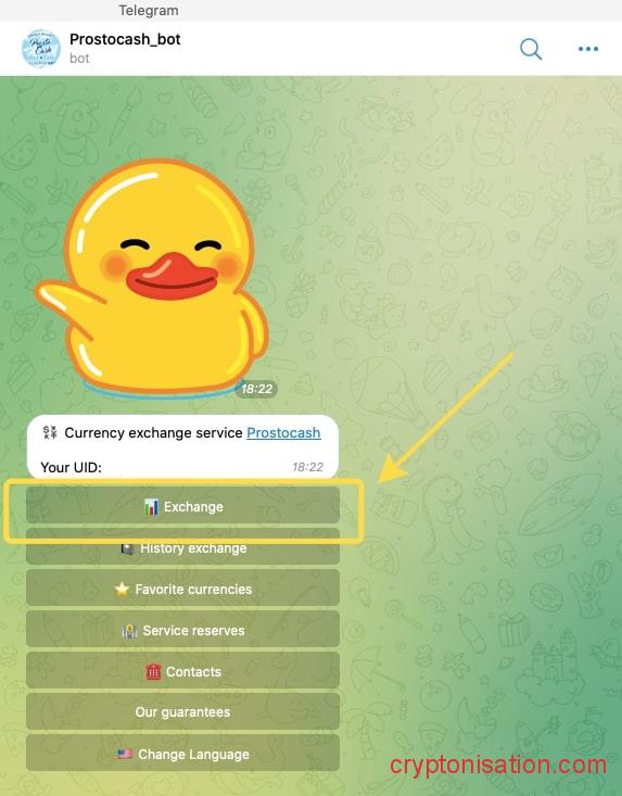 - Найдите @Prostocash_bot в мессенджере Telegram;