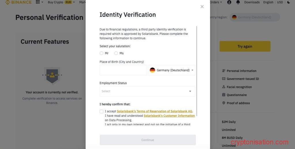 Верификация является обязательным этапом работы на Binance. Чтобы начать торговать на бирже, достаточно пройти базовую проверку. Чтобы увеличить лимиты на вывод и получить доступ к полному функционалу биржи, потребуется пройти расширенную проверку (верификация плюс). 🚩