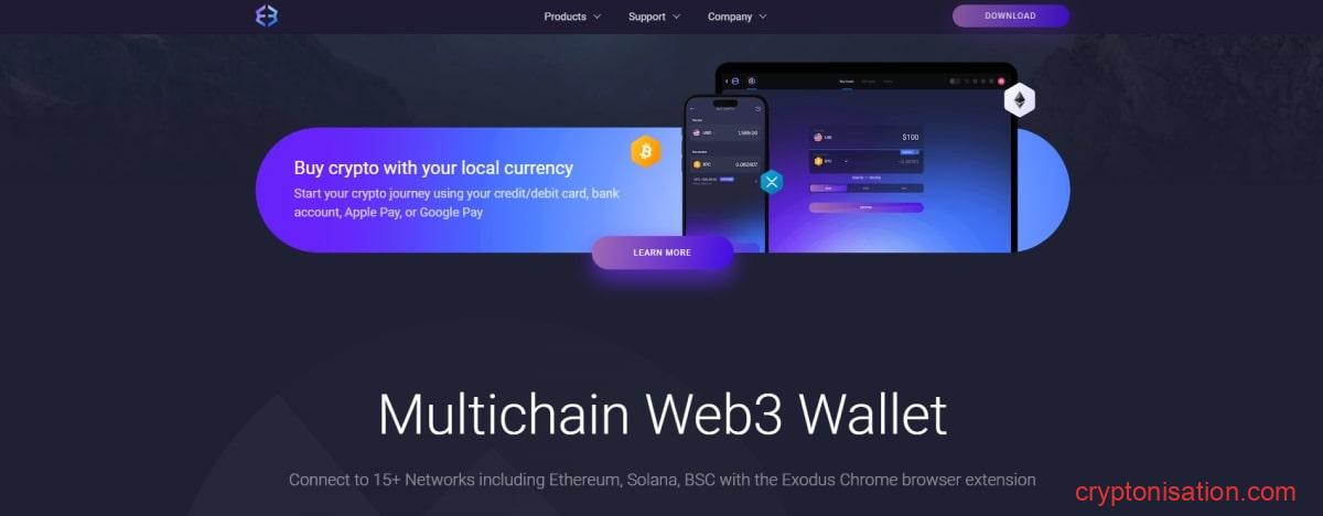 Exodus поддержкивает множество валют, доступен в виде приложения для настольных компьютеров, мобильных устройств и веб-расширения. Отличается простым интерфейсом, поддержкой стейкинга и встроенным магазином NFT.