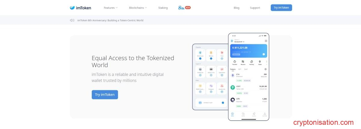 imToken представлен в версиях для настольных компьютеров, мобильных устройств, а также в виде аппаратного хранилища. Имеет встроенную DEX-биржу и магазин NFT.