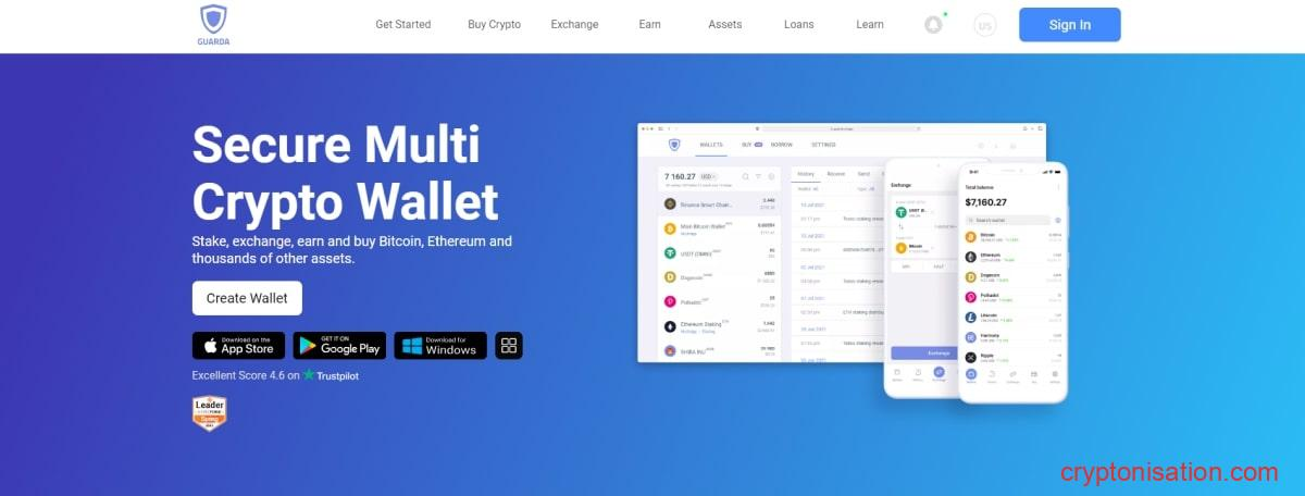 Guarda Wallet отличается поддержкой фиатных валют, встроенным обменником и высоким уровнем безопасности. Доступен в виде приложения для настольных компьютеров, мобильных устройств и веб-расширения.