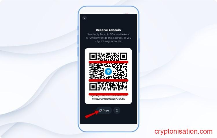 - Сгенерируется адрес кошелька. Необходимо его скопировать, нажав Copy;