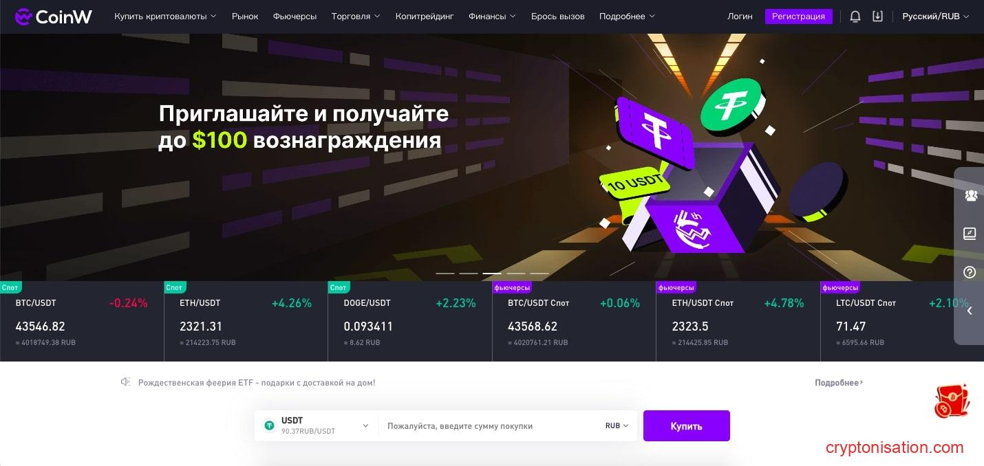 Сайт на русском языке: https://www.coinw.com/