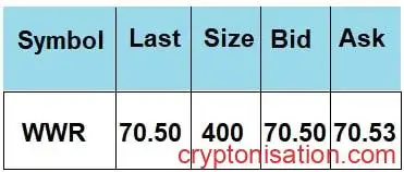 - Bid. Самая высокая цена, по которой покупатель хочет купить акции WWR;