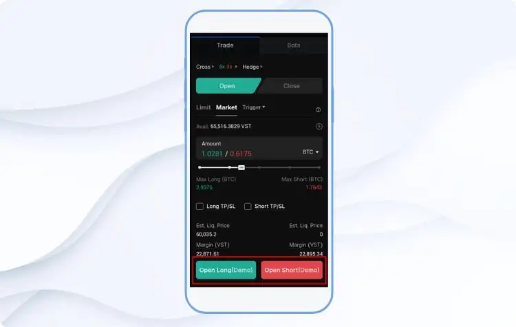 На рынке бессрочных фьючерсов трейдер открывает шорт-позицию на контракт BTC, рассчитывая на снижение цены.