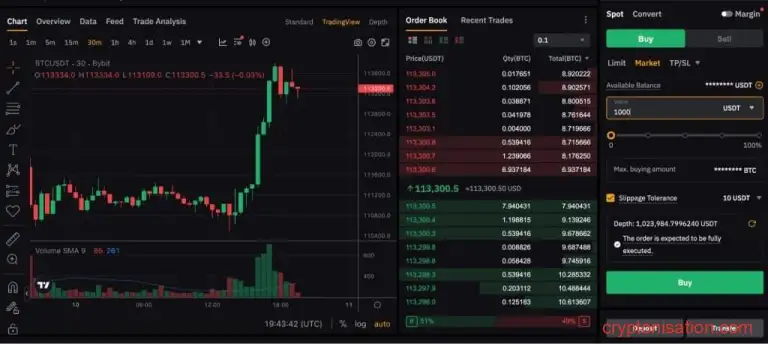 Разместить рыночный ордер достаточно просто – это стандартное действие на любой бирже. Последовательность действий зависит от интерфейса. Рассмотрим, как это сделать на спотовом рынке в интерфейсе биржи Bybit: