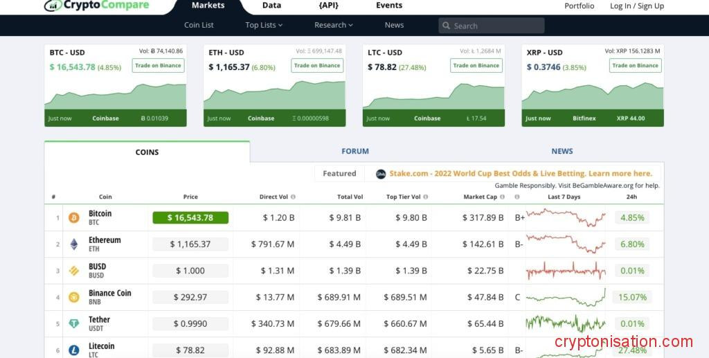 - Трекер от крупнейшего в мире независимого агрегатора данных о криптовалюте;