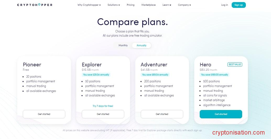 Адрес сайта: https://www.cryptohopper.com/pricing