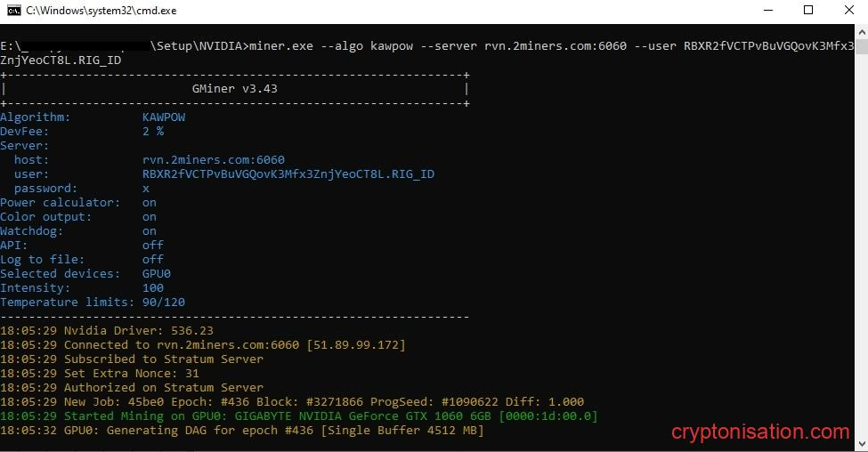Настройка файла конфигурации - Затем кликните левой клавишей мыши по исполняемому файлу rvn-pool. Майнер запустится. Через некоторое вы сможете найти свой майнер в разделе Miners Online.