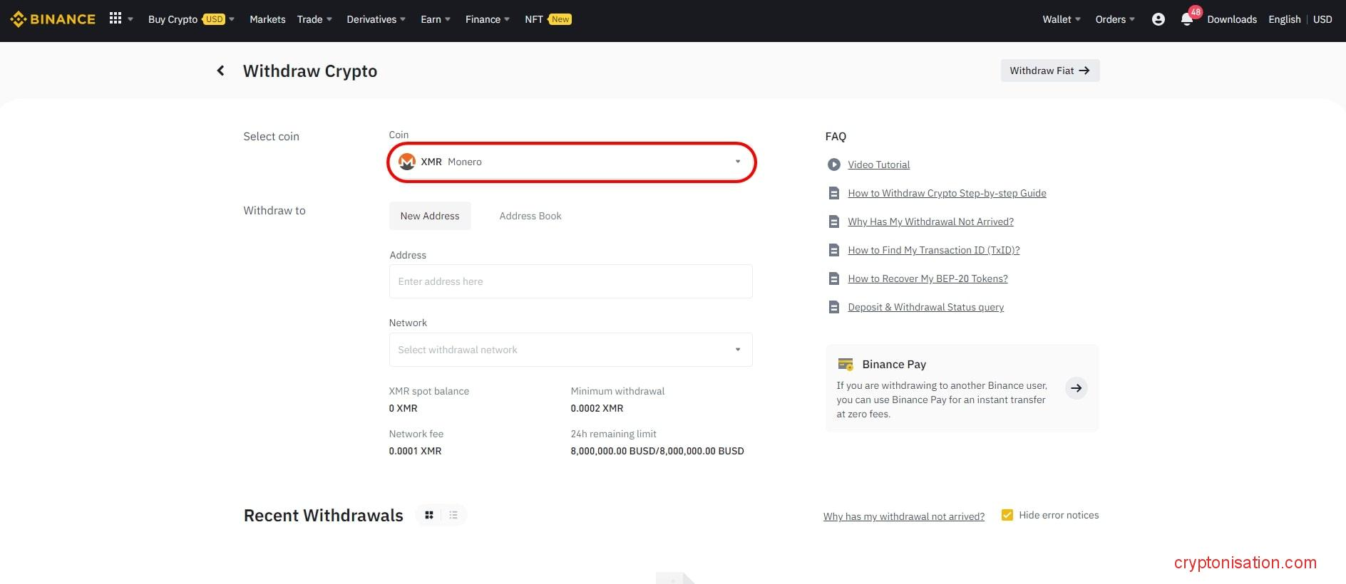 Przyjrzymy się wypłacie Monero na przykładzie giełdy 👉 Binance oraz portfela Atomic Wallet. Aby przenieść XMR do portfela, należy: