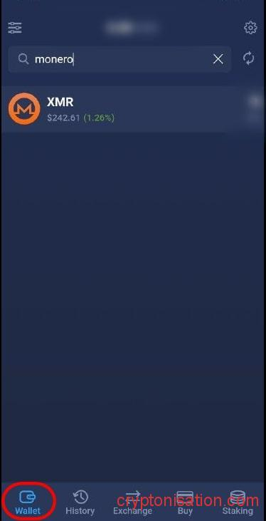 - W aplikacji Atomic Wallet w sekcji Wallet znajdź i wybierz Monero;