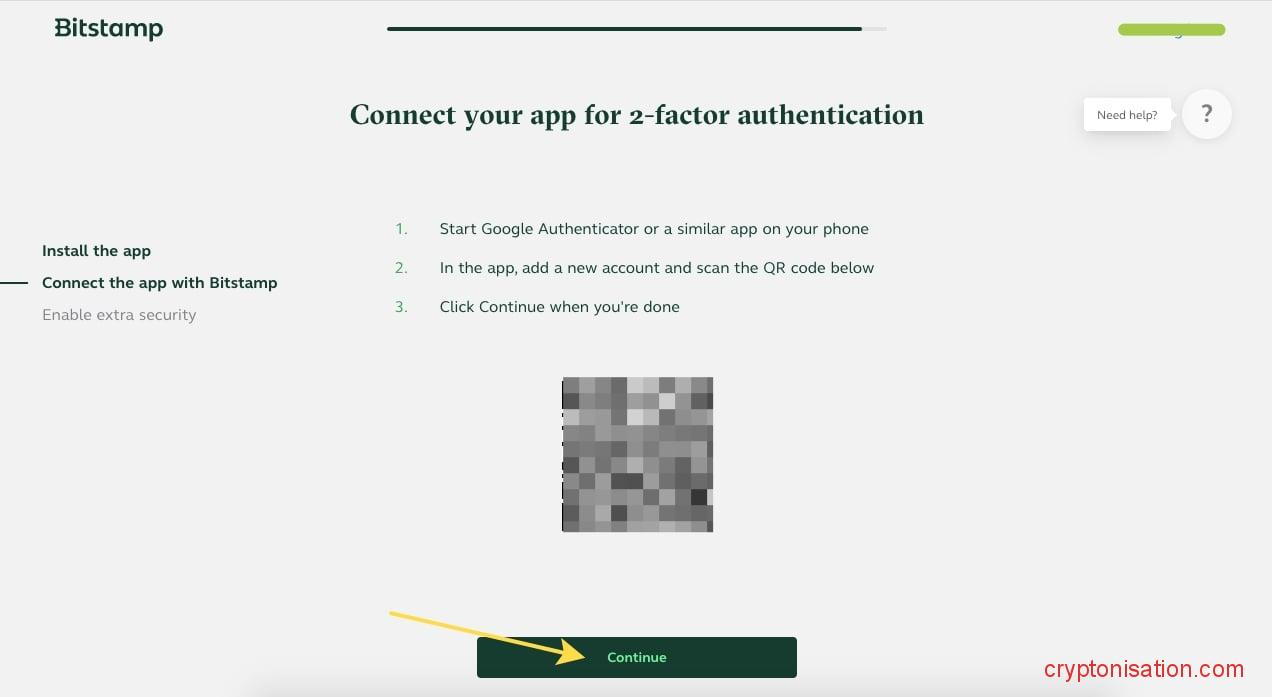 Podobnie jak weryfikacja, wzmocniona ochrona konta za pomocą 2FA jest warunkiem wstępnym pracy z giełdą. Dlatego system natychmiast poprosi Cię o aktywację uwierzytelniania dwuskładnikowego. Aby to zrobić: