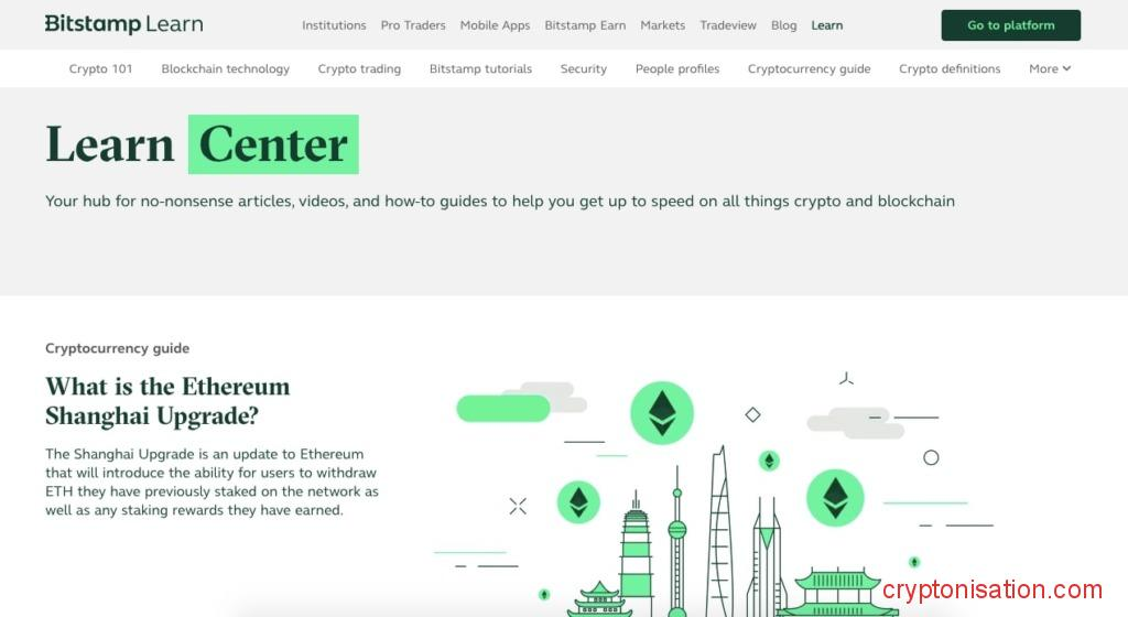 Dla pasywnego zarabiania oferowany jest staking i pożyczanie, a także opcja Bitstamp-as-a-service dla banków i innych instytucji finansowych. Użytkownikom proponowana jest sekcja szkoleniowa oraz program partnerski. 👍