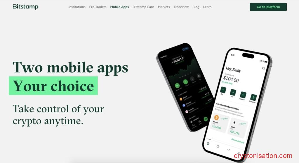 Użytkownicy Bitstamp mogą korzystać z aplikacji mobilnej. Do wyboru jest aplikacja Bitstamp, najprostszy sposób kupowania i sprzedawania kryptowalut (tylko dla systemu Android) oraz Bitstamp Pro, stworzona dla profesjonalnych traderów i ekspertów kryptowalutowych (dla systemów iOS i Android).