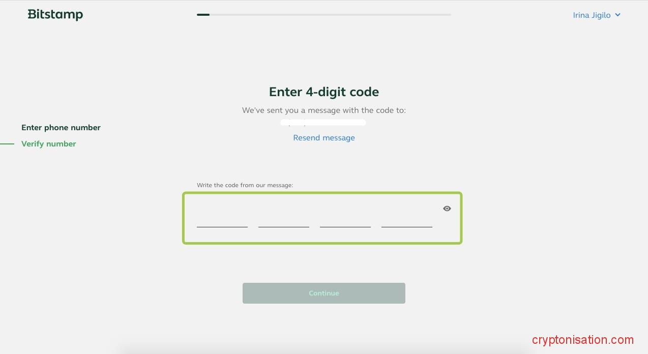 - W nowym oknie wprowadź 4-cyfrowy kod, który został otrzymany na telefon i naciśnij Continue;