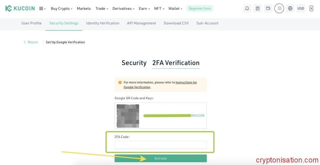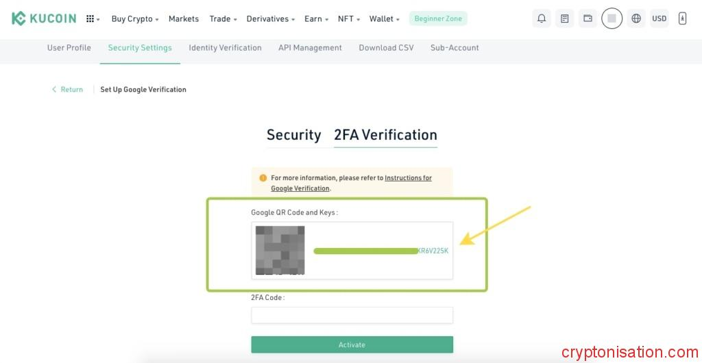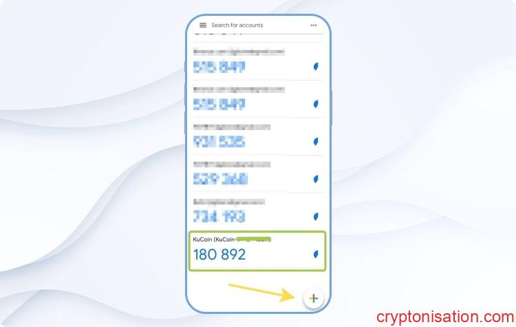 Tajny klucz Google - Po zapisaniu tajnego klucza, otwórz aplikację Google Authenticator w telefonie, stuknij w +, aby dodać nowy kod (lub tapnij Scan barcode, aby otworzyć aparat i zeskanować kod). To skonfiguruje Google Authenticator dla KuCoin, a aplikacja zacznie generować 6-cyfrowe kody 2FA;