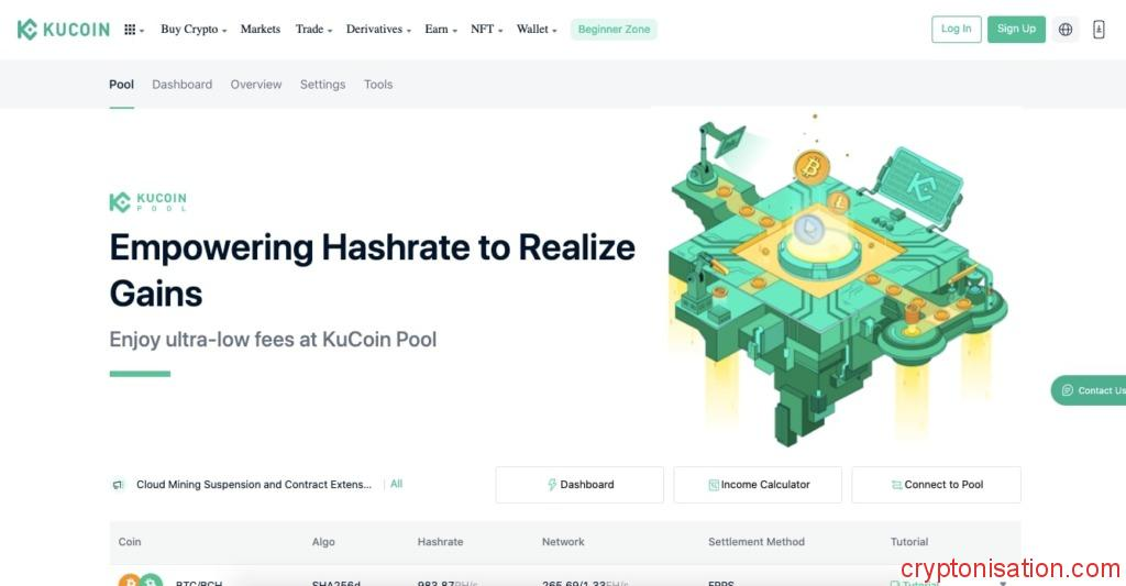 Kucoin aktywnie rozwija wysokowydajny PoW mining pool (obecnie obsługuje waluty Bitcoin (BTC) i Bitcoin Cash (BCH).
