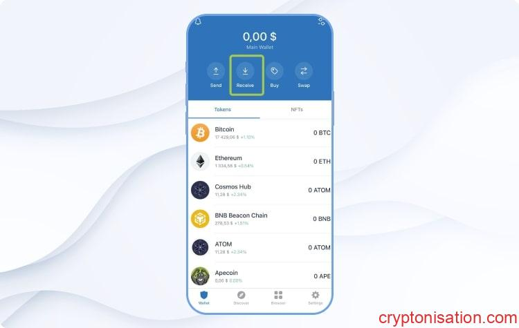 - Przejdź do aplikacji portfela na swoim urządzeniu mobilnym i wybierz opcję Receive;