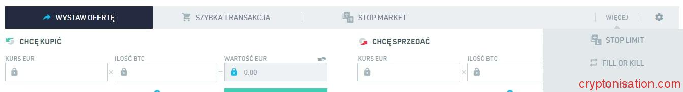 Łącznie na giełdzie dostępne są następujące typy zleceń: