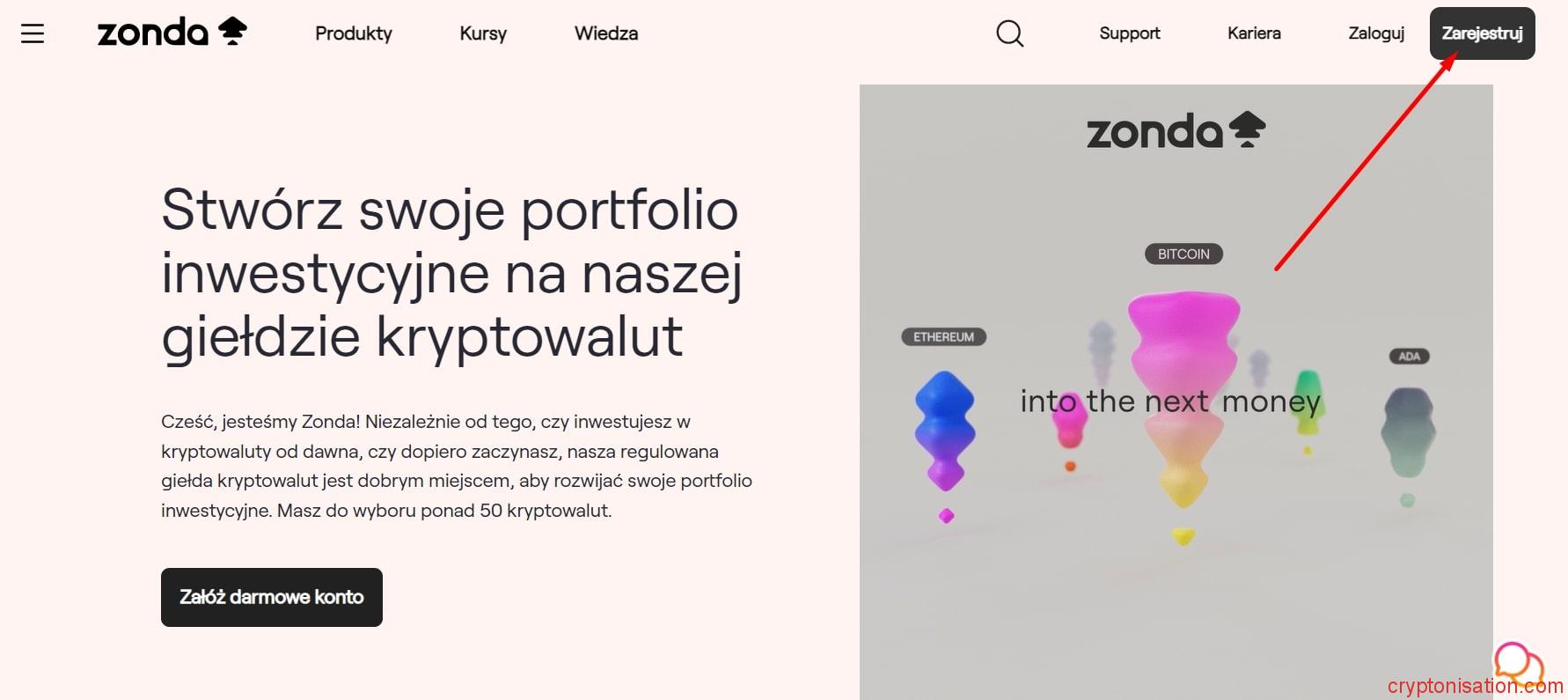 - Na 👉 oficjalnej stronie internetowej giełdy kliknij Zarejestruj;