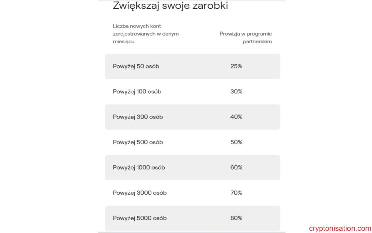 Giełda posiada program afiliacyjny, który umożliwia otrzymywanie wynagrodzenia za zapraszanie innych użytkowników platformy. Gdy ktoś założy konto poprzez link, który udostępnisz, otrzymasz do 80% prowizji z operacji, które wykona ta osoba. Wysokość prowizji, którą nagradzamy naszych użytkowników jest uzależniona od ilości nowych kont założonych poprzez spersonalizowany link.