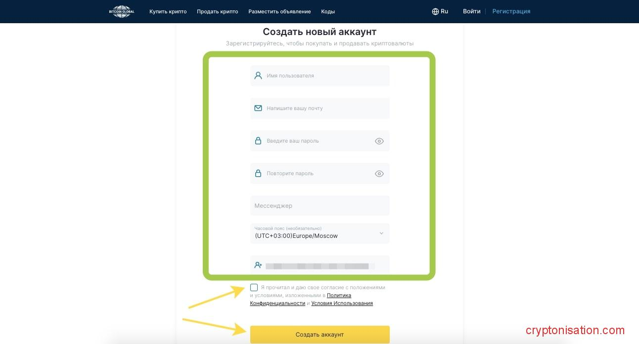 Пошаговая инструкция, как зарегистрироваться на Bitcoin Global: