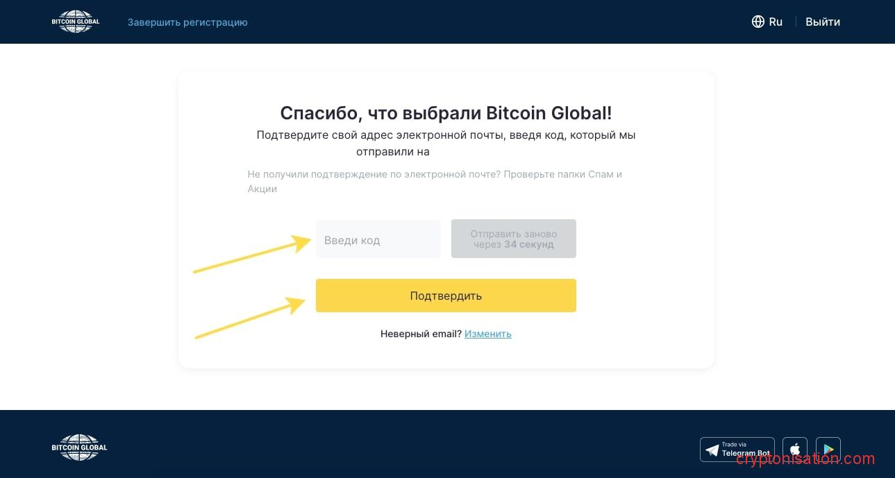 Регистрация в Bitcoin Global