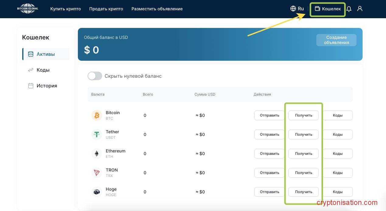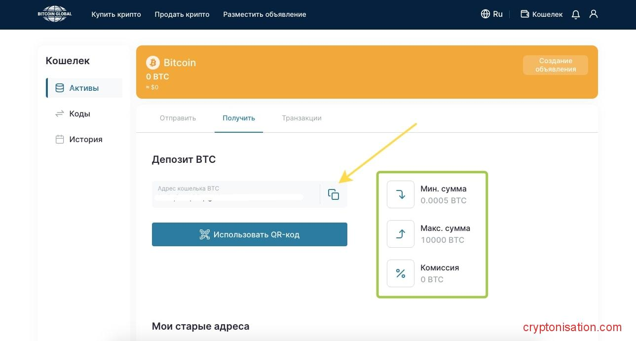 Как пополнить Bitcoin Global