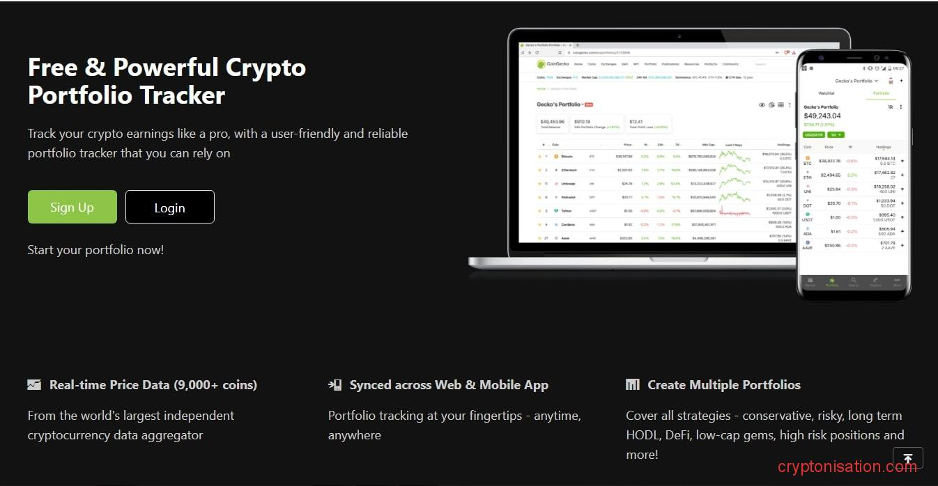 - Для трекинга доступны 9К+ криптовалют;