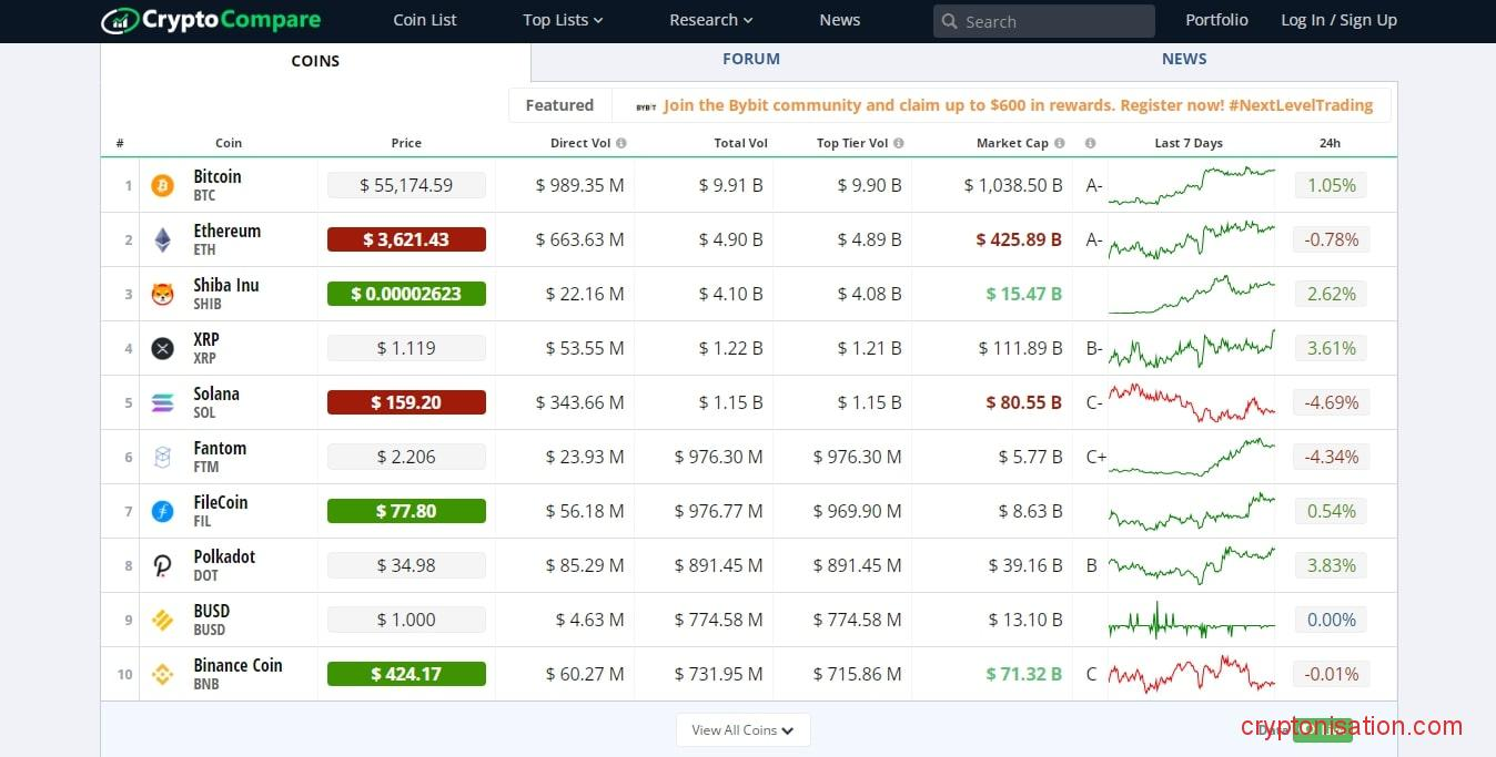 3. CryptoCompare 🥉