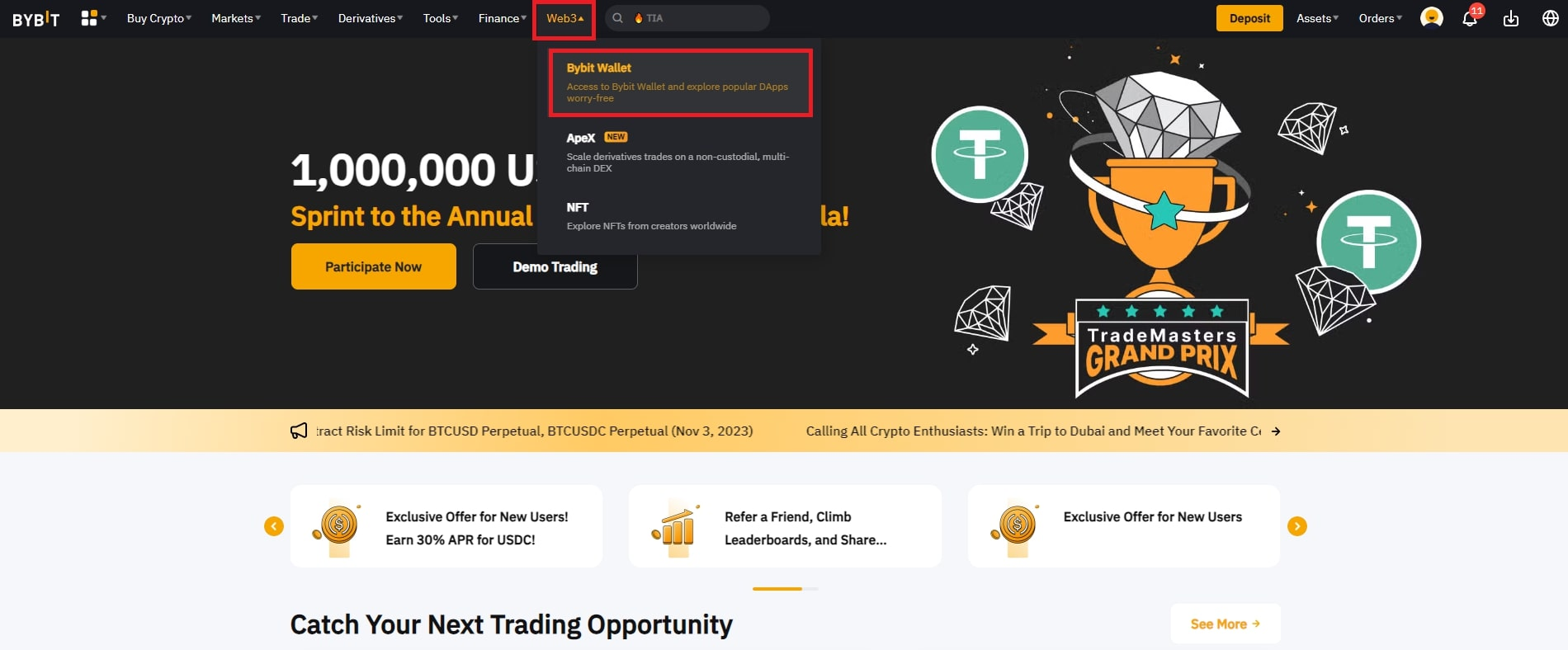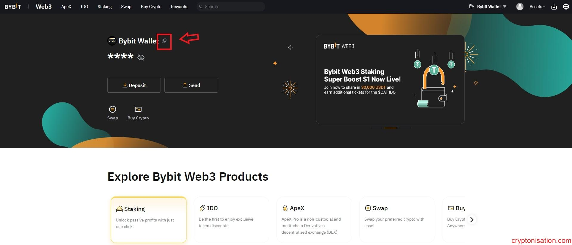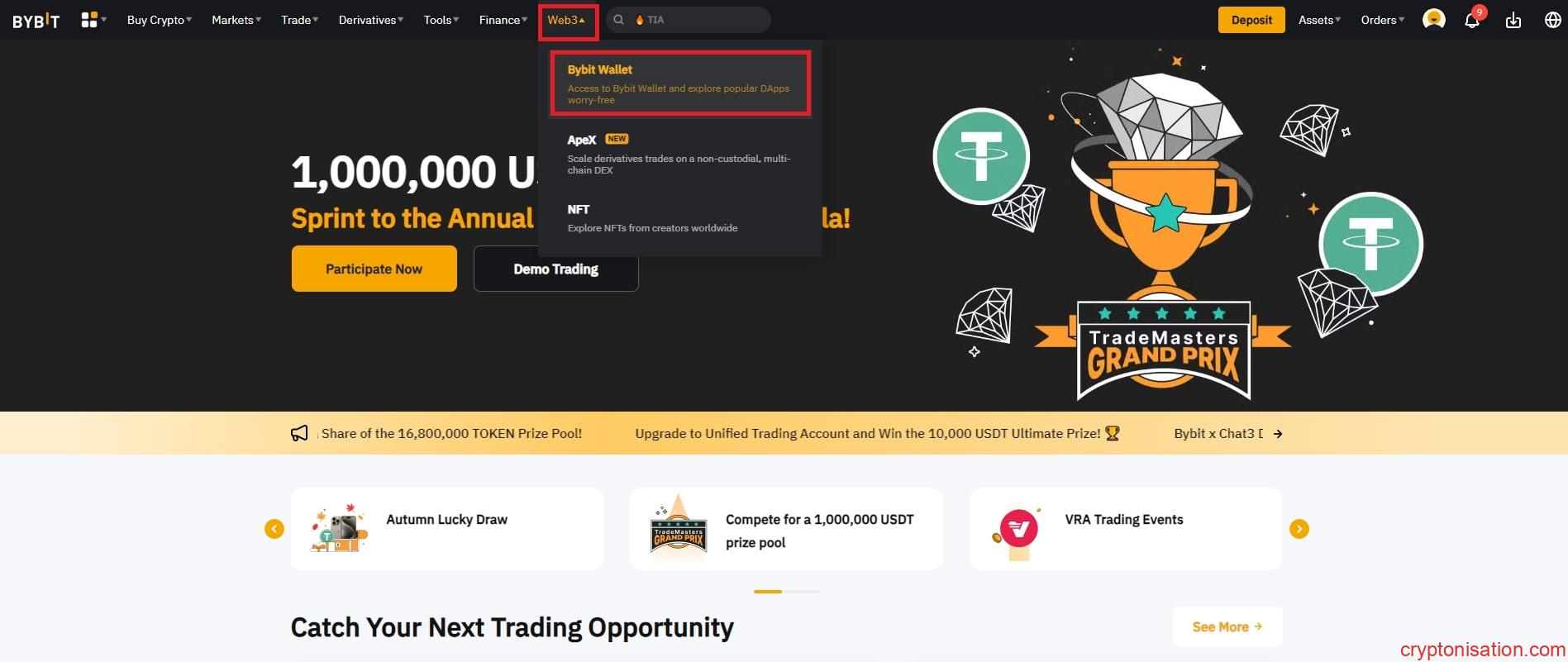 - Borsanın ana sayfasında, Web3 → Bybit Wallet sekmesine tıklayın;
