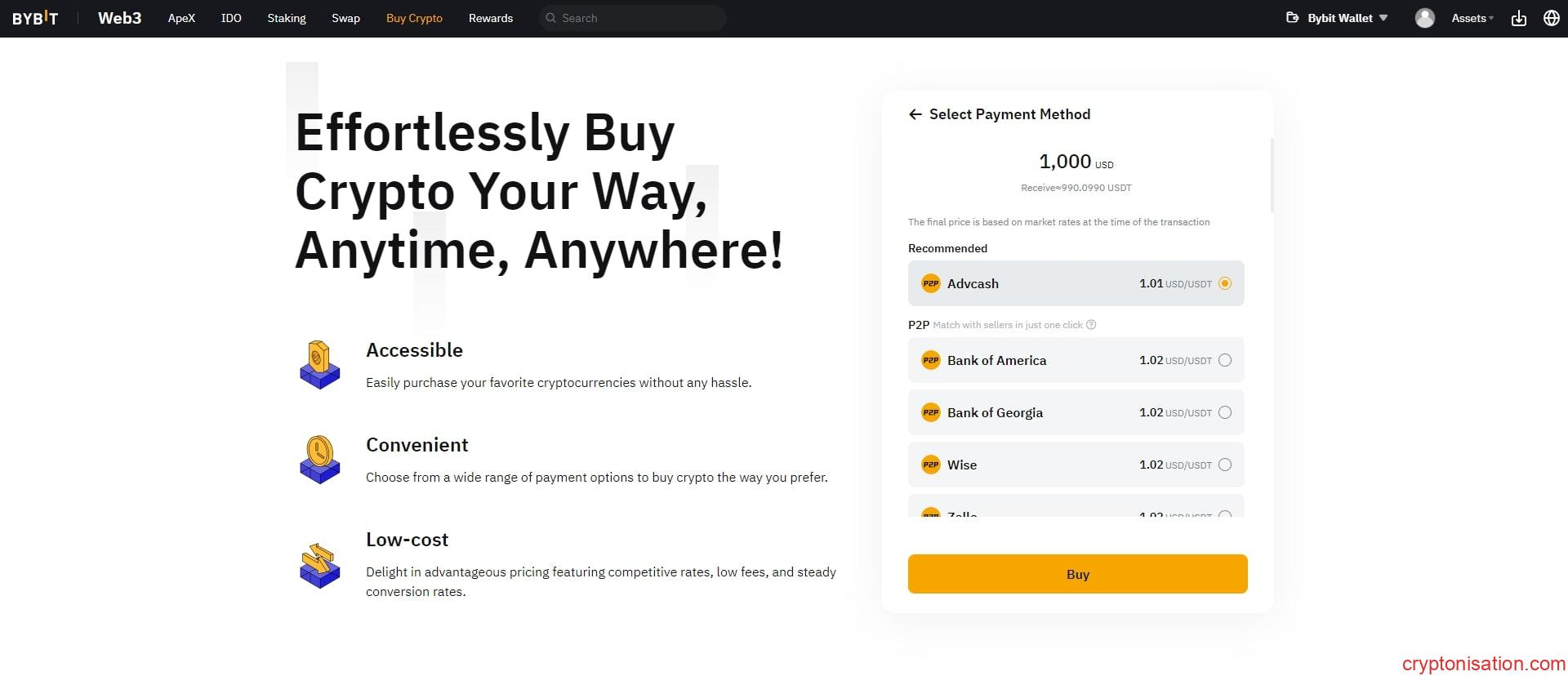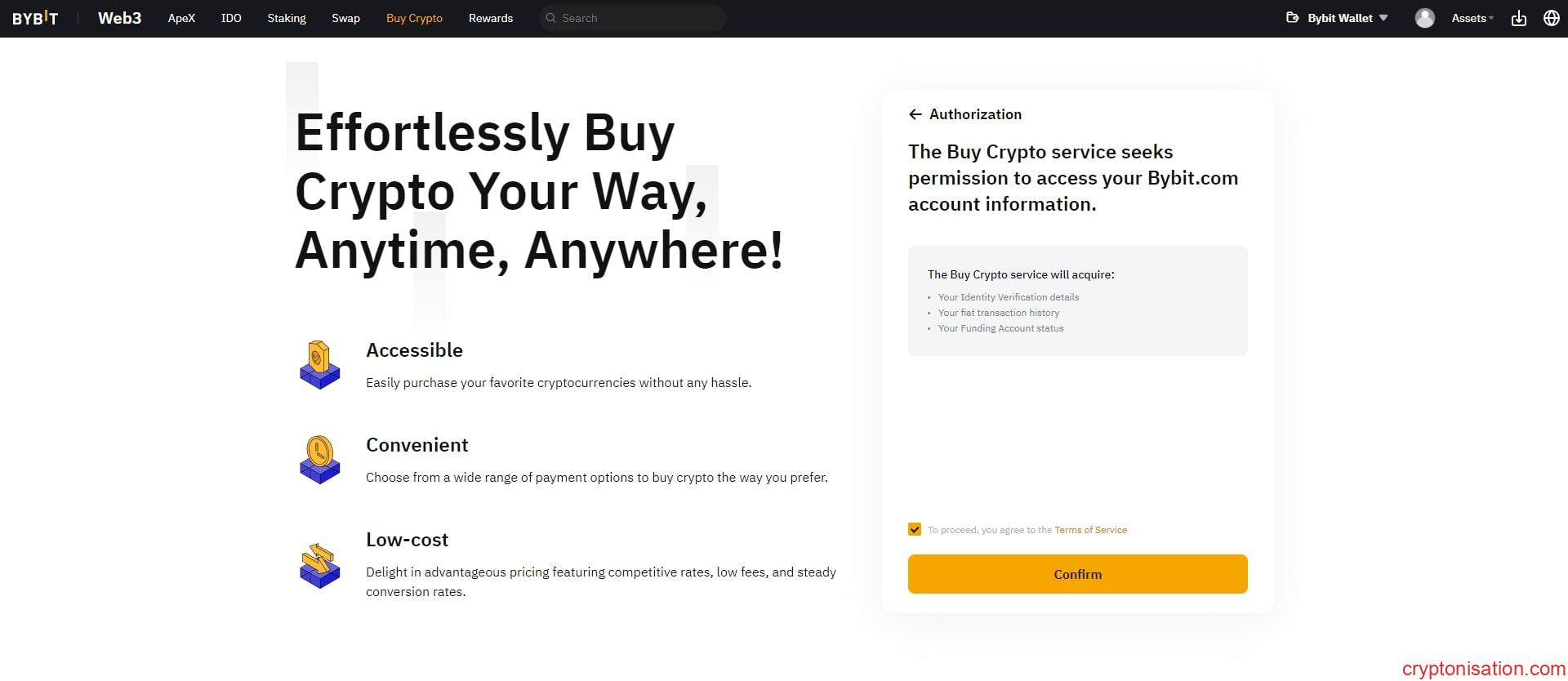- Bybit Wallet sayfasında Buy Crypto hizmetine gidin;