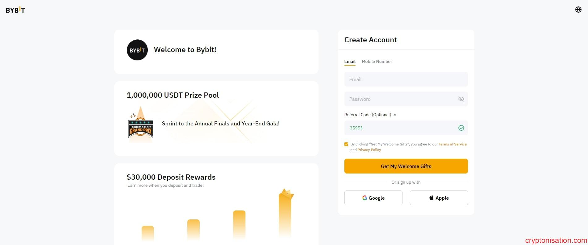 Bybit Wallet oluşturmak için bir Bybit kullanıcı hesabına ihtiyaç vardır. Borsada hesap oluşturmak için şunları yapabilirsiniz: