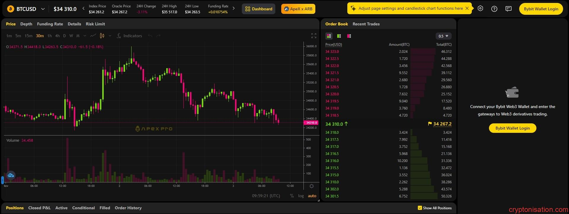 ApeX – bu, Bybit Web3 ekosisteminden doğrudan erişilen kripto para birimleri ticareti için bir DEX platformudur. 21 popüler kripto para birimine vadeli işlemlerle işlem yapma imkanı sunar ve tüm DEX platformu avantajlarına sahiptir. İşleme başlamak için Bybit Wallet cüzdanıyla borsada kimlik doğrulaması yapmak gereklidir.