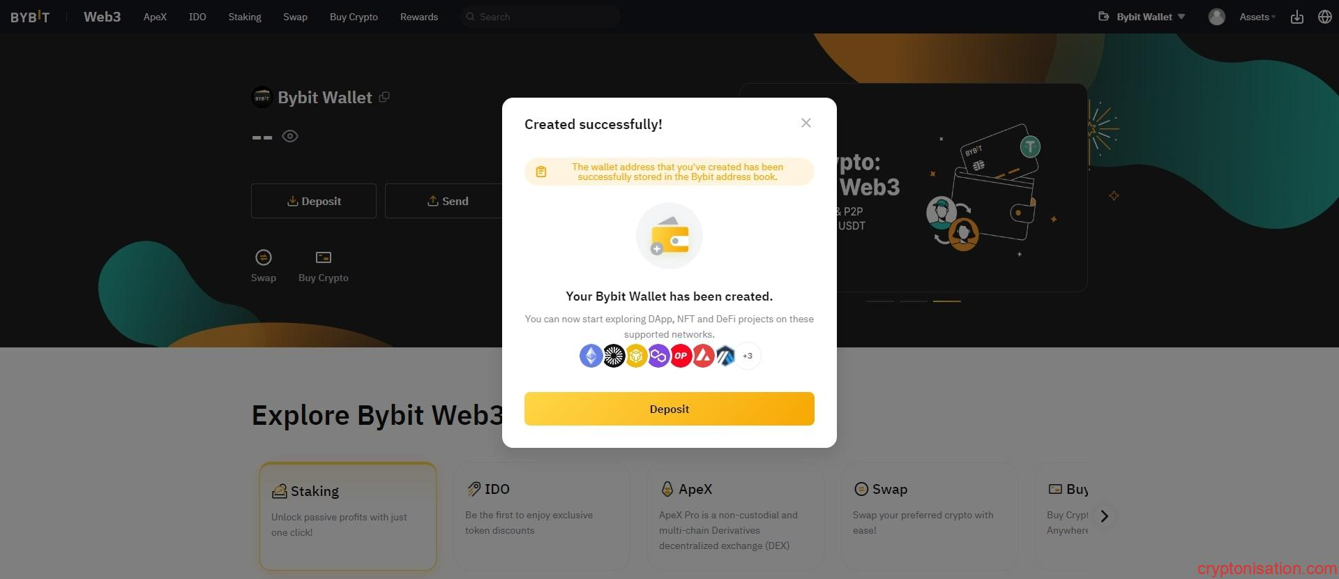 Bybit Wallet oluşturulduktan sonra hoşgeldiniz penceresi