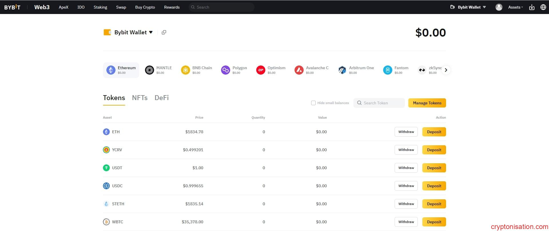Bu nedenle, yeni başlayanlar için kullanıcı dostu bir arayüze sahip gözetimli cüzdanları kullanmak daha uygun olabilir. Bu tür uygulamalar genellikle merkezi borsaların hesaplarına bağlıdır ve bu borsaların defi ekosistemlerinin bir parçasıdır. Bu tür bir cüzdan örneği, Bybit borsasının Bybit Wallet uygulamasıdır ve bu makalede Cryptonisation.com uzmanları tarafından detaylı bir şekilde incelenecektir.
