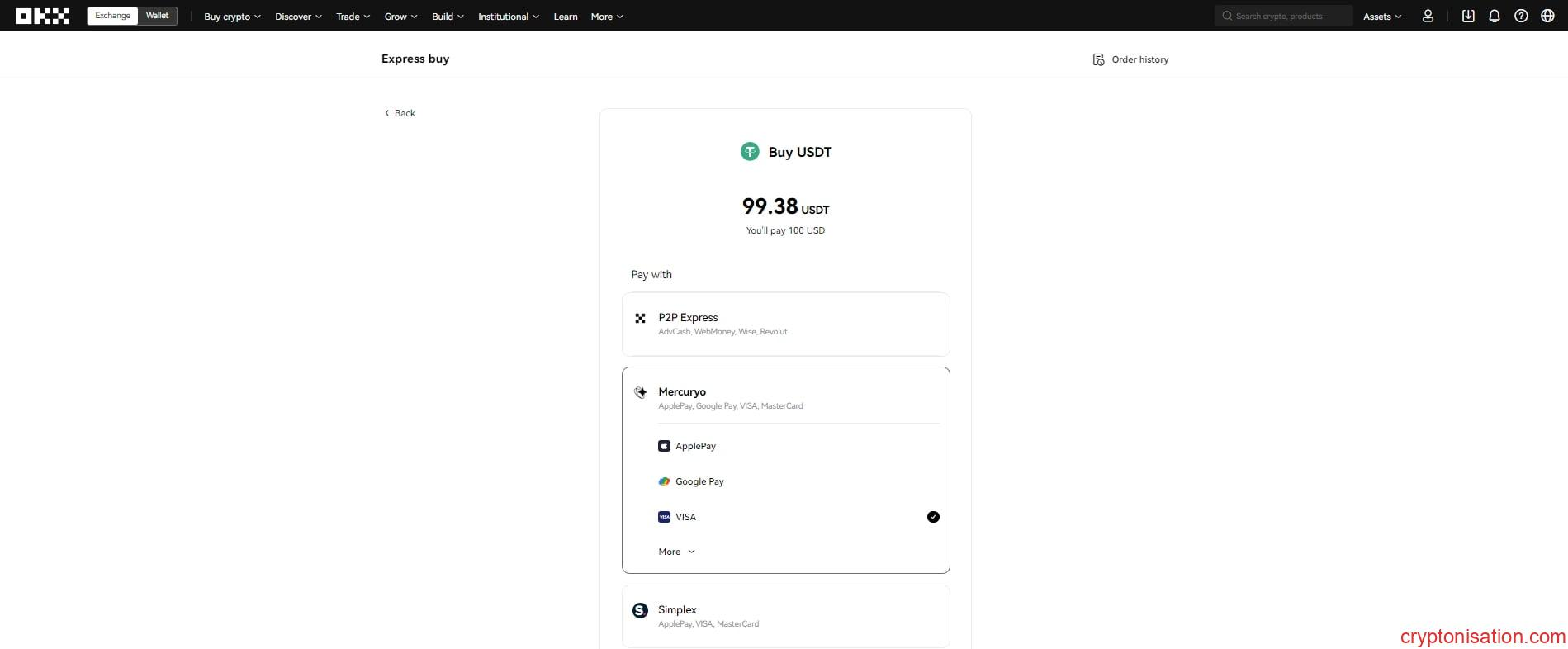 Örnek olarak, Visa kartıyla USDT kripto para birimini hesaba nasıl yatırabileceğinizi düşünelim. Bunun için aşağıdaki adımları izlemeniz gerekecektir: