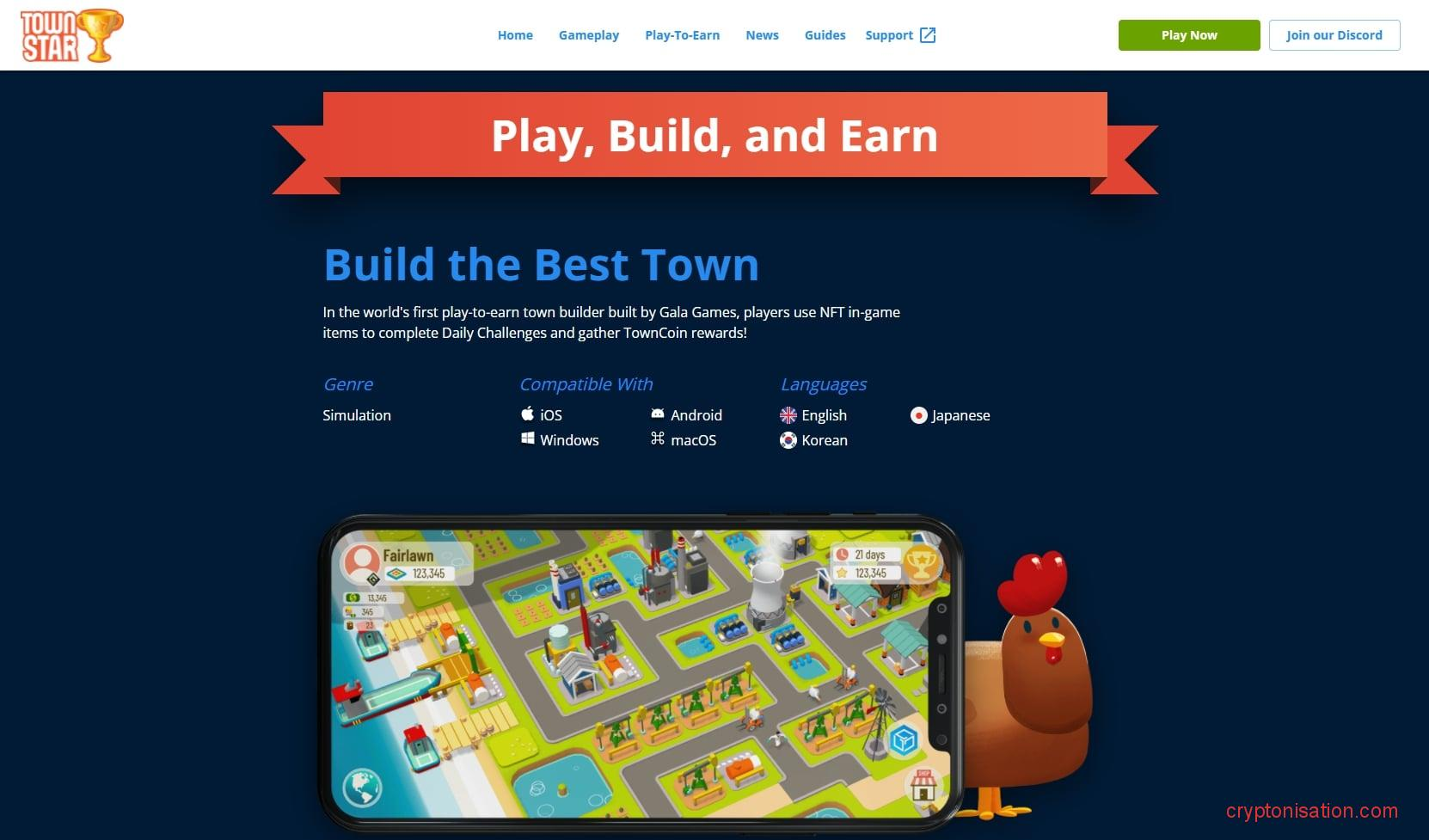 Town Star – флагманский продукт компании Gala Games. Построена на децентрализованной сети Gala, которая использует блокчейн Ethereum, поэтому принадлежащими игрокам NFT можно торговать на вторичных рынках.